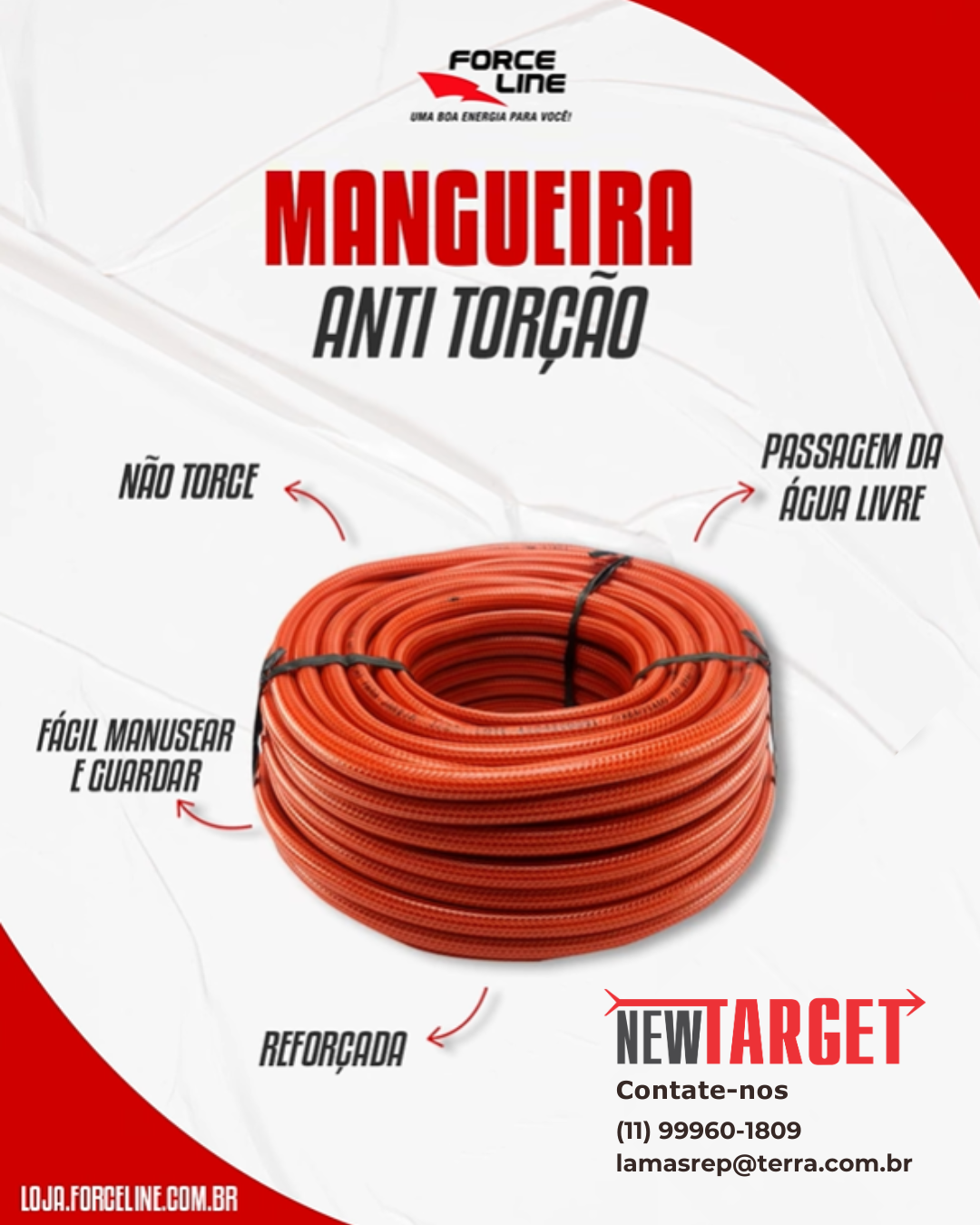 Mangueiras Force Line: feitas pra durar!Nossas mangueiras são reforçadas, super resistentes e anti torção, ideais para o uso diário sem dor de cabeça.Durabilidade que você